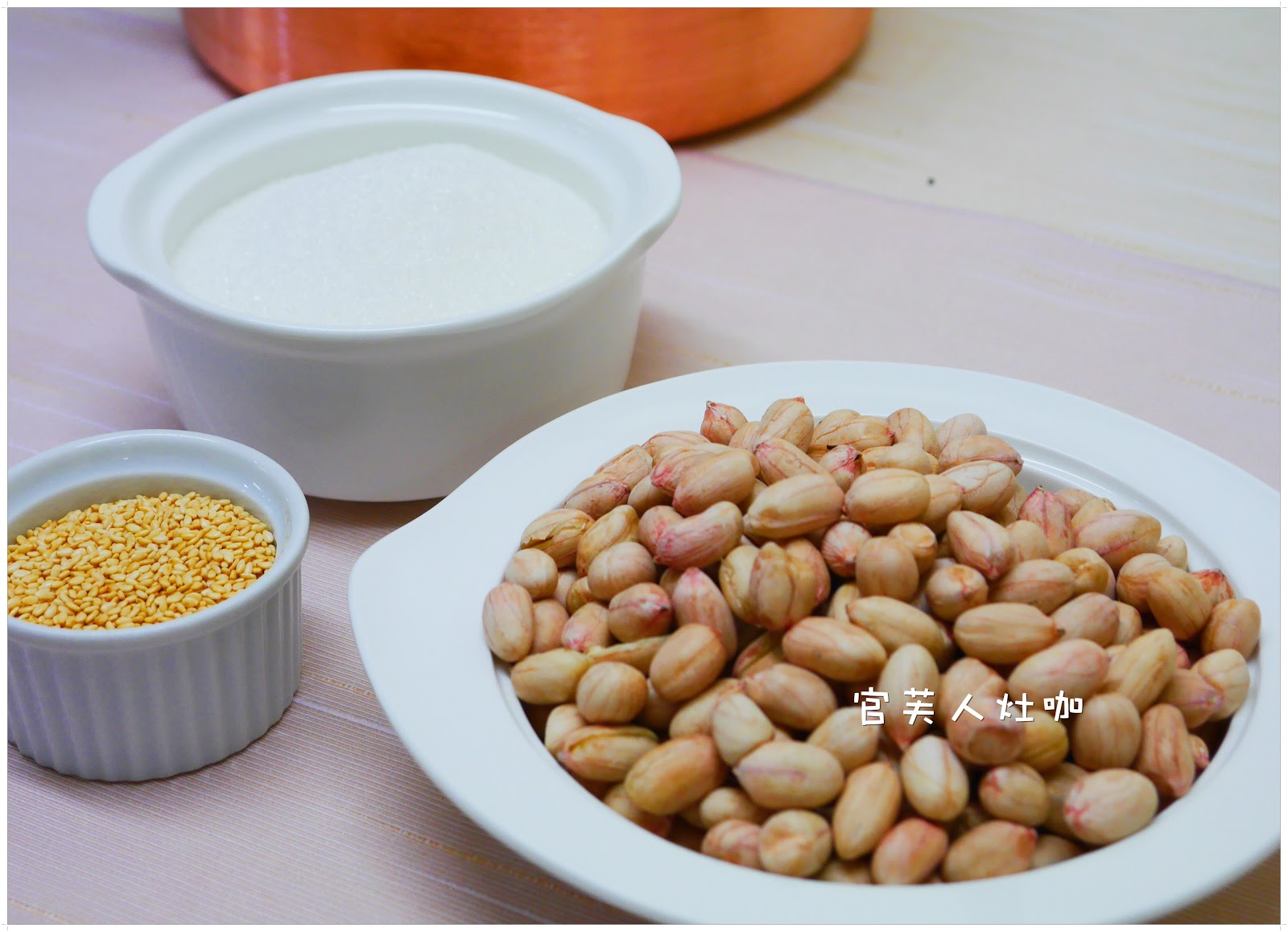 ▲材料的話分別是帶皮生花生350g /白砂糖 / 130g / 水25cc / 白芝麻15g